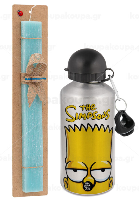 The Simpsons Bart, Easter Set, metallic silver aluminum water bottle (500ml) & scented flat Easter candle (30cm) (TURQUOISE)