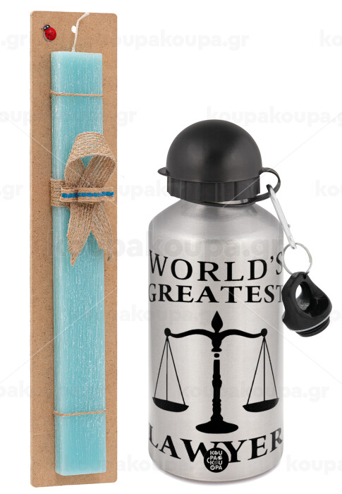 World's greatest Lawyer, Easter Set, metallic silver aluminum water bottle (500ml) & scented flat Easter candle (30cm) (TURQUOISE)