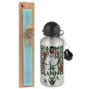 Giannis Antetokounmpo, Easter Set, metallic silver aluminum water bottle (500ml) & scented flat Easter candle (30cm) (TURQUOISE)