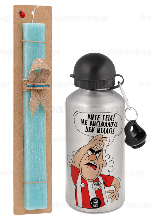 Τάκης, Άντε γεια, με ανώμαλους δεν μιλάω!, Easter Set, metallic silver aluminum water bottle (500ml) & scented flat Easter candle (30cm) (TURQUOISE)