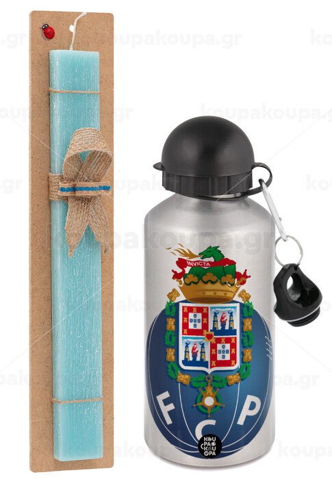 FCP, Easter Set, metallic silver aluminum water bottle (500ml) & scented flat Easter candle (30cm) (TURQUOISE)