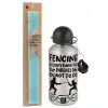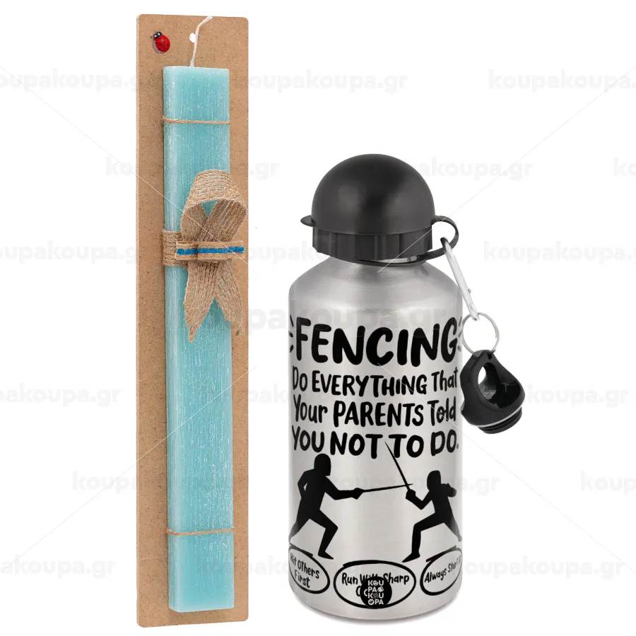 Fencing, do everything that your parents told you not to do., Easter Set, metallic silver aluminum water bottle (500ml) & scented flat Easter candle (30cm) (TURQUOISE)
