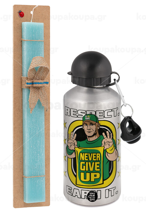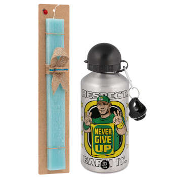 John Cena, Easter Set, metallic silver aluminum water bottle (500ml) & scented flat Easter candle (30cm) (TURQUOISE)