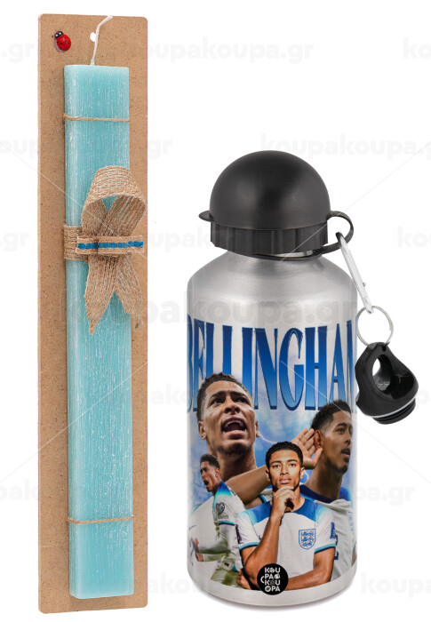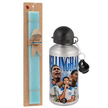 Jude Bellingham, Easter Set, metallic silver aluminum water bottle (500ml) & scented flat Easter candle (30cm) (TURQUOISE)