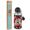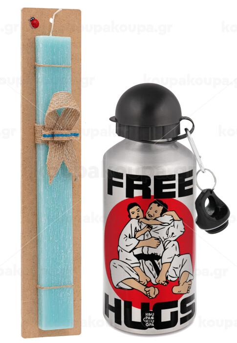 JUDO free hugs, Easter Set, metallic silver aluminum water bottle (500ml) & scented flat Easter candle (30cm) (TURQUOISE)