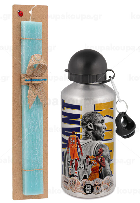 Kobe Bryant, Easter Set, metallic silver aluminum water bottle (500ml) & scented flat Easter candle (30cm) (TURQUOISE)