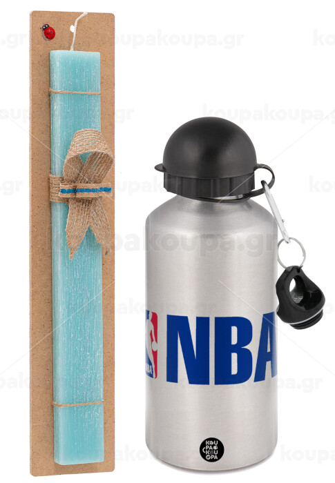 NBA, Easter Set, metallic silver aluminum water bottle (500ml) & scented flat Easter candle (30cm) (TURQUOISE)
