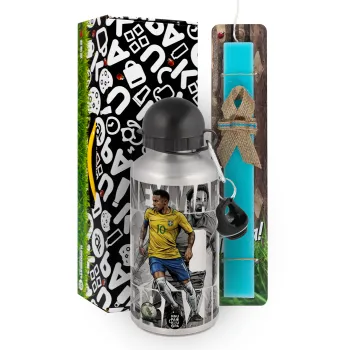 Neymar (Νεϊμάρ), Easter Set, metallic silver aluminum water bottle (500ml) & scented flat Easter candle (30cm) (TURQUOISE)