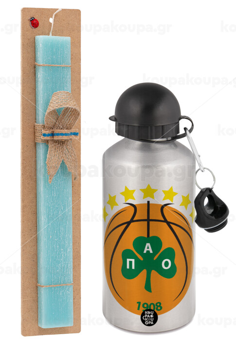 PAO BC, Easter Set, metallic silver aluminum water bottle (500ml) & scented flat Easter candle (30cm) (TURQUOISE)