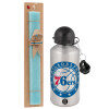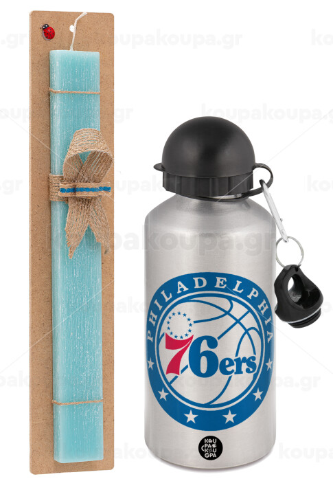 Philadelphia 76ers, Easter Set, metallic silver aluminum water bottle (500ml) & scented flat Easter candle (30cm) (TURQUOISE)