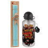 Halloween it's most wonderful time of the year, Easter Set, metallic silver aluminum water bottle (500ml) & scented flat Easter candle (30cm) (TURQUOISE)