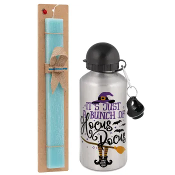 It's just a bunch of hocus pocus - halloween, Easter Set, metallic silver aluminum water bottle (500ml) & scented flat Easter candle (30cm) (TURQUOISE)