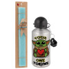 Yoda, one for me , Easter Set, metallic silver aluminum water bottle (500ml) & scented flat Easter candle (30cm) (TURQUOISE)