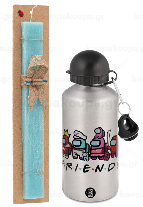 Among US Friends, Easter Set, metallic silver aluminum water bottle (500ml) & scented flat Easter candle (30cm) (TURQUOISE)