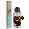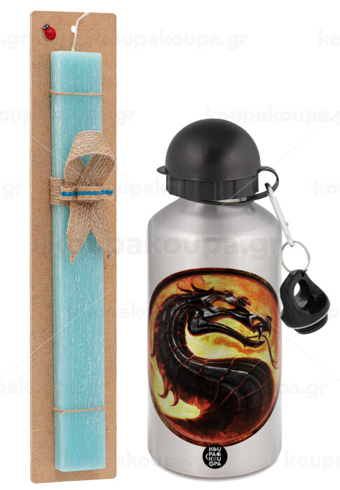 Mortal Kombat, Easter Set, metallic silver aluminum water bottle (500ml) & scented flat Easter candle (30cm) (TURQUOISE)