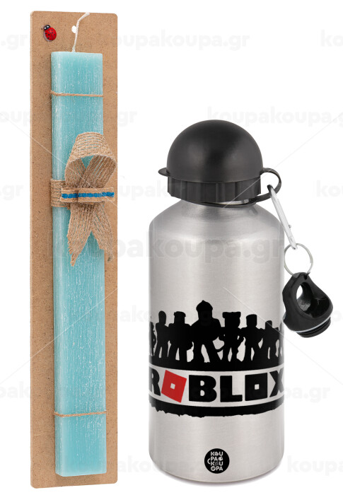 Roblox team, Easter Set, metallic silver aluminum water bottle (500ml) & scented flat Easter candle (30cm) (TURQUOISE)