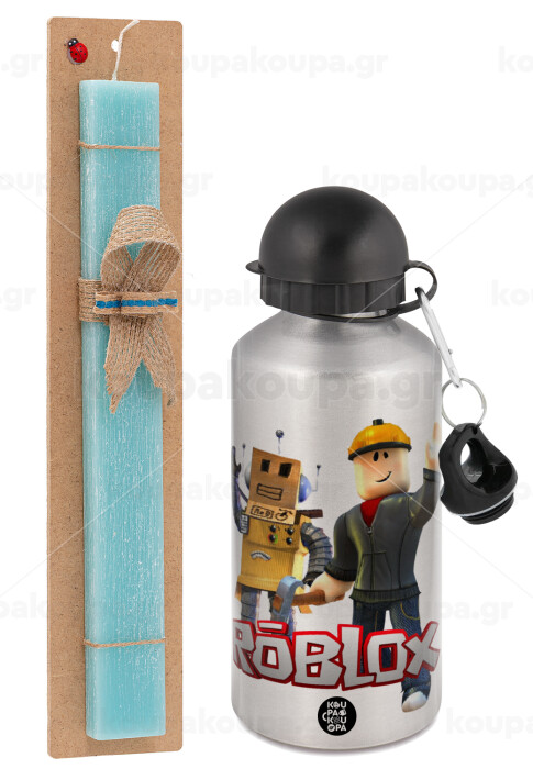 Roblox, Easter Set, metallic silver aluminum water bottle (500ml) & scented flat Easter candle (30cm) (TURQUOISE)