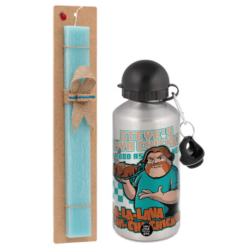 Steves Lava Chicken, Easter Set, metallic silver aluminum water bottle (500ml) & scented flat Easter candle (30cm) (TURQUOISE)