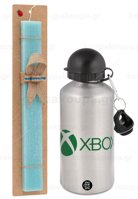xbox, Easter Set, metallic silver aluminum water bottle (500ml) & scented flat Easter candle (30cm) (TURQUOISE)