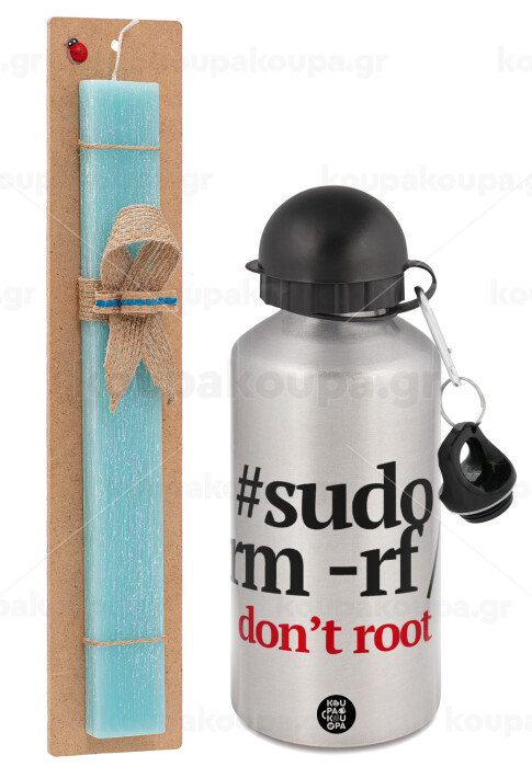 Sudo RM, Easter Set, metallic silver aluminum water bottle (500ml) & scented flat Easter candle (30cm) (TURQUOISE)