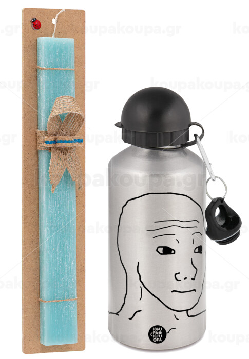 Feel guy, Easter Set, metallic silver aluminum water bottle (500ml) & scented flat Easter candle (30cm) (TURQUOISE)
