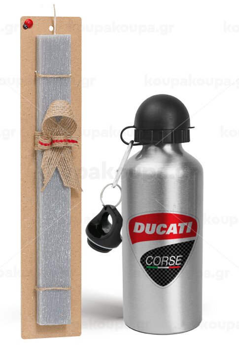 Ducati, Easter Set, metallic silver aluminum water bottle (500ml) & aromatic flat Easter candle (30cm) (GRAY)
