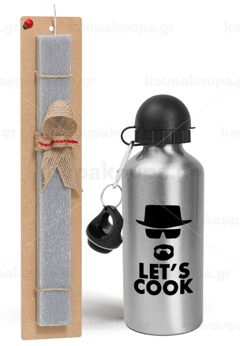 Let's cook, Easter Set, metallic silver aluminum water bottle (500ml) & aromatic flat Easter candle (30cm) (GRAY)