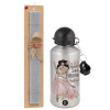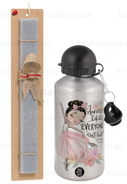 Dance Like everyone's watching, Easter Set, metallic silver aluminum water bottle (500ml) & aromatic flat Easter candle (30cm) (GRAY)