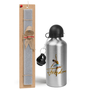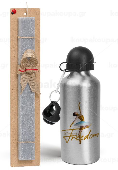 Gold Dancer, Easter Set, metallic silver aluminum water bottle (500ml) & aromatic flat Easter candle (30cm) (GRAY)