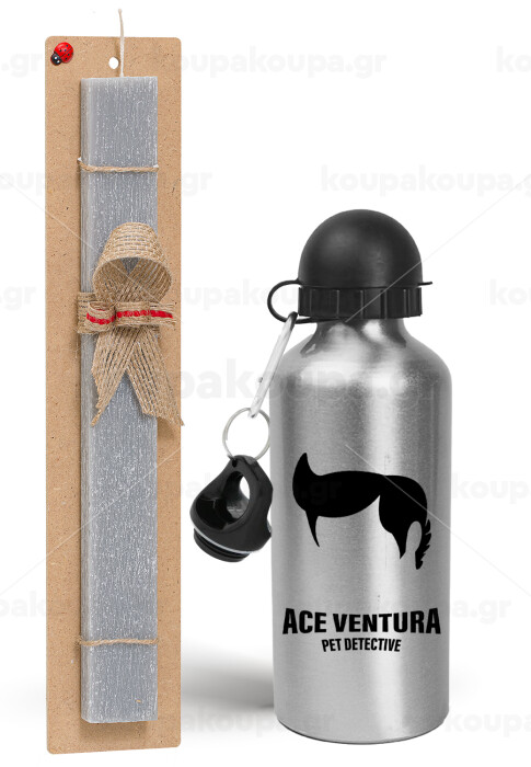 Ace Ventura Pet Detective, Easter Set, metallic silver aluminum water bottle (500ml) & aromatic flat Easter candle (30cm) (GRAY)