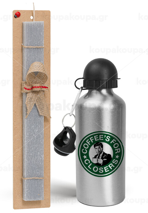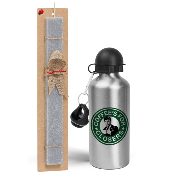 Coffee's for closers, Easter Set, metallic silver aluminum water bottle (500ml) & aromatic flat Easter candle (30cm) (GRAY)