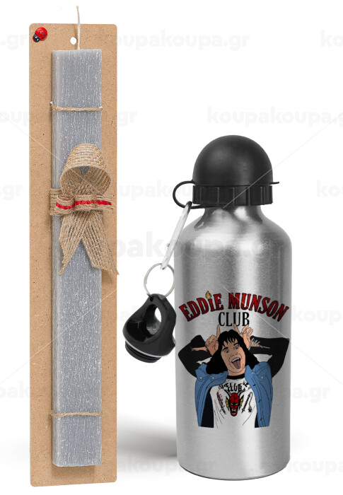 Eddie Munson, Easter Set, metallic silver aluminum water bottle (500ml) & aromatic flat Easter candle (30cm) (GRAY)