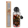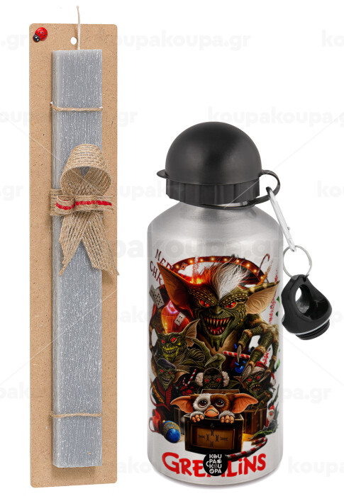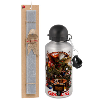 Gremlins, Easter Set, metallic silver aluminum water bottle (500ml) & aromatic flat Easter candle (30cm) (GRAY)