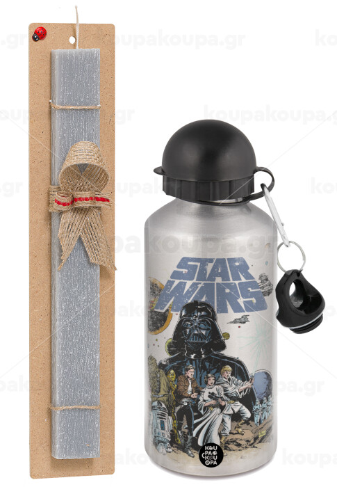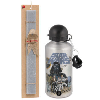 Star Wars, Easter Set, metallic silver aluminum water bottle (500ml) & aromatic flat Easter candle (30cm) (GRAY)