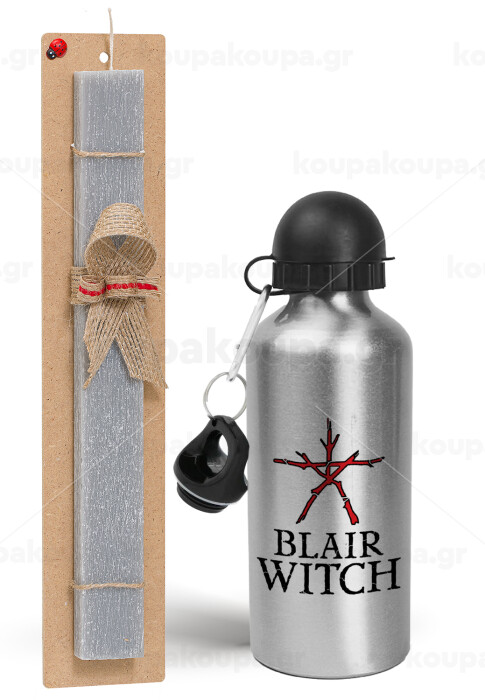 The Blair Witch Project , Easter Set, metallic silver aluminum water bottle (500ml) & aromatic flat Easter candle (30cm) (GRAY)