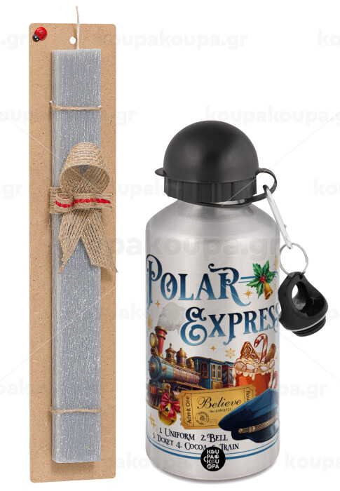 The Polar Express, Easter Set, metallic silver aluminum water bottle (500ml) & aromatic flat Easter candle (30cm) (GRAY)