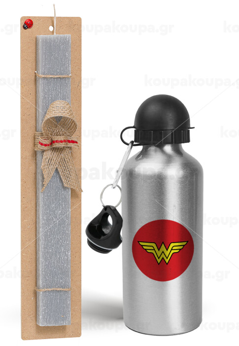 Wonder woman, Easter Set, metallic silver aluminum water bottle (500ml) & aromatic flat Easter candle (30cm) (GRAY)