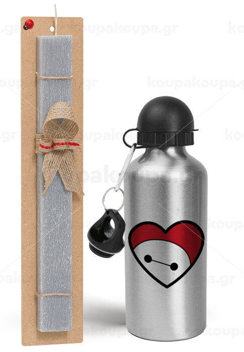 Baymax heart, Easter Set, metallic silver aluminum water bottle (500ml) & aromatic flat Easter candle (30cm) (GRAY)