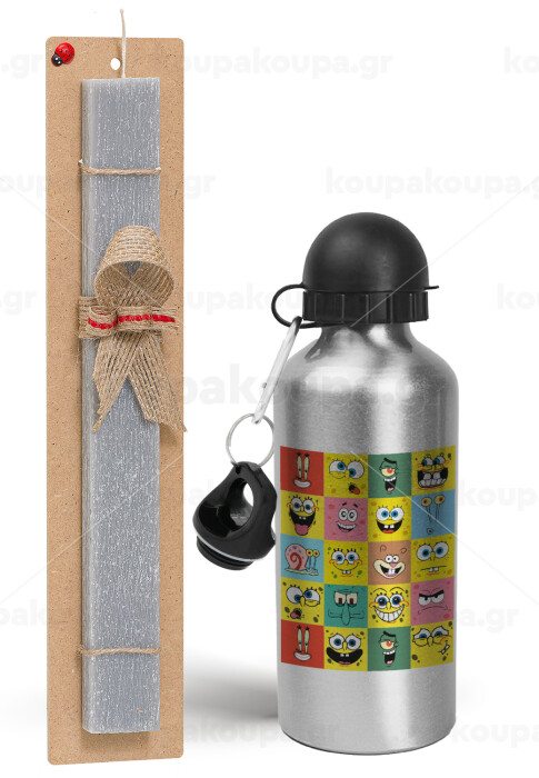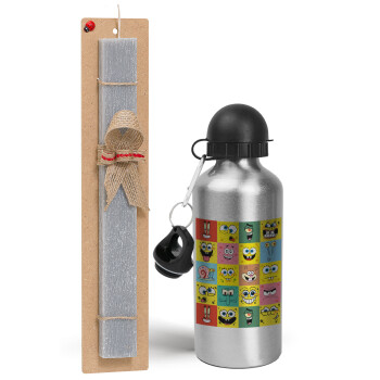 BOB spongebob and friends, Easter Set, metallic silver aluminum water bottle (500ml) & aromatic flat Easter candle (30cm) (GRAY)
