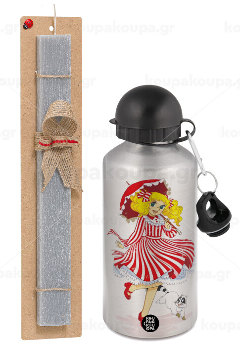 Candy, Easter Set, metallic silver aluminum water bottle (500ml) & aromatic flat Easter candle (30cm) (GRAY)