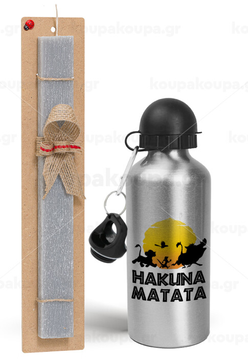 Hakuna Matata, Easter Set, metallic silver aluminum water bottle (500ml) & aromatic flat Easter candle (30cm) (GRAY)