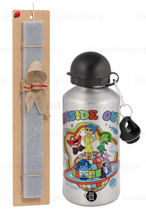 Inside Out, Easter Set, metallic silver aluminum water bottle (500ml) & aromatic flat Easter candle (30cm) (GRAY)