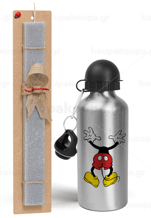 Mickey hide..., Easter Set, metallic silver aluminum water bottle (500ml) & aromatic flat Easter candle (30cm) (GRAY)