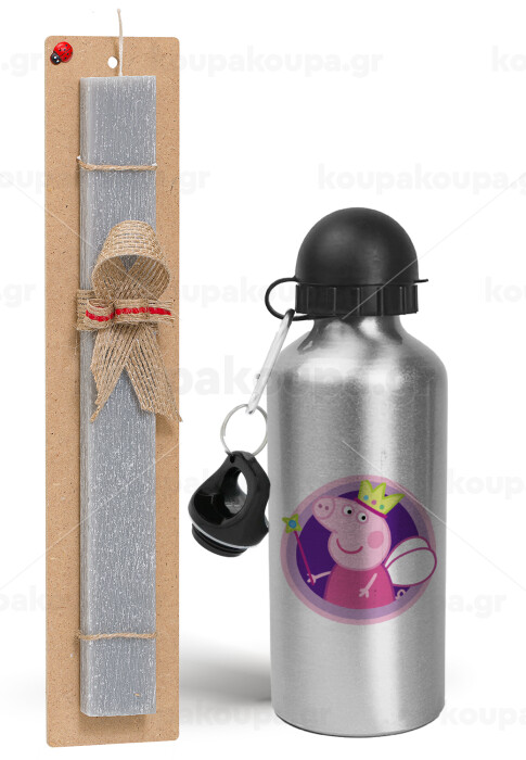 Peppa pig Queen, Easter Set, metallic silver aluminum water bottle (500ml) & aromatic flat Easter candle (30cm) (GRAY)