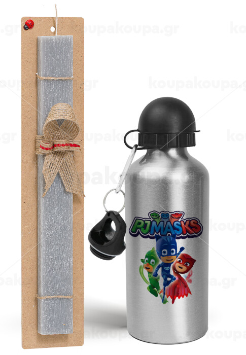 PJ masks, Easter Set, metallic silver aluminum water bottle (500ml) & aromatic flat Easter candle (30cm) (GRAY)