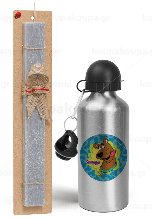 Scooby Doo, Easter Set, metallic silver aluminum water bottle (500ml) & aromatic flat Easter candle (30cm) (GRAY)