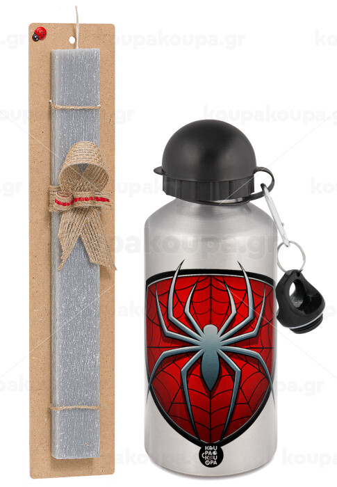 Spider-man, Easter Set, metallic silver aluminum water bottle (500ml) & aromatic flat Easter candle (30cm) (GRAY)
