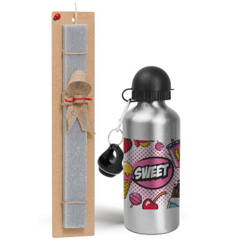 SWEET, Easter Set, metallic silver aluminum water bottle (500ml) & aromatic flat Easter candle (30cm) (GRAY)