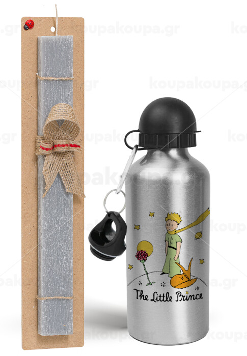 The Little prince classic, Easter Set, metallic silver aluminum water bottle (500ml) & aromatic flat Easter candle (30cm) (GRAY)