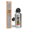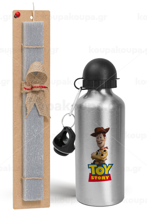 Woody cowboy, Easter Set, metallic silver aluminum water bottle (500ml) & aromatic flat Easter candle (30cm) (GRAY)